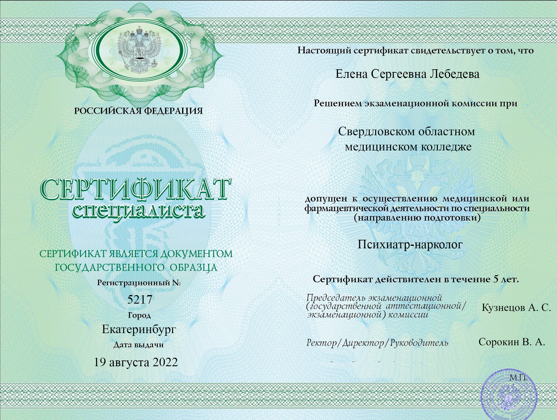 Елена Сергеевна Лебедева врач нарколог клиники доктора Стукаловой в Рубцовске